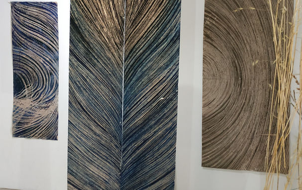 Dans celles de Marie-Laure Abboubi, on ressent l'énergie de la vie surgir des fibres végétales dans de grands monochromes aux gestes amples, et au graphisme appuyé .